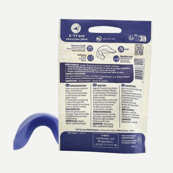 Dispositif médical pour les juniors. Indiqué pour le sevrage tardif, les ronflements, grincements de dents, rééducation linguale.